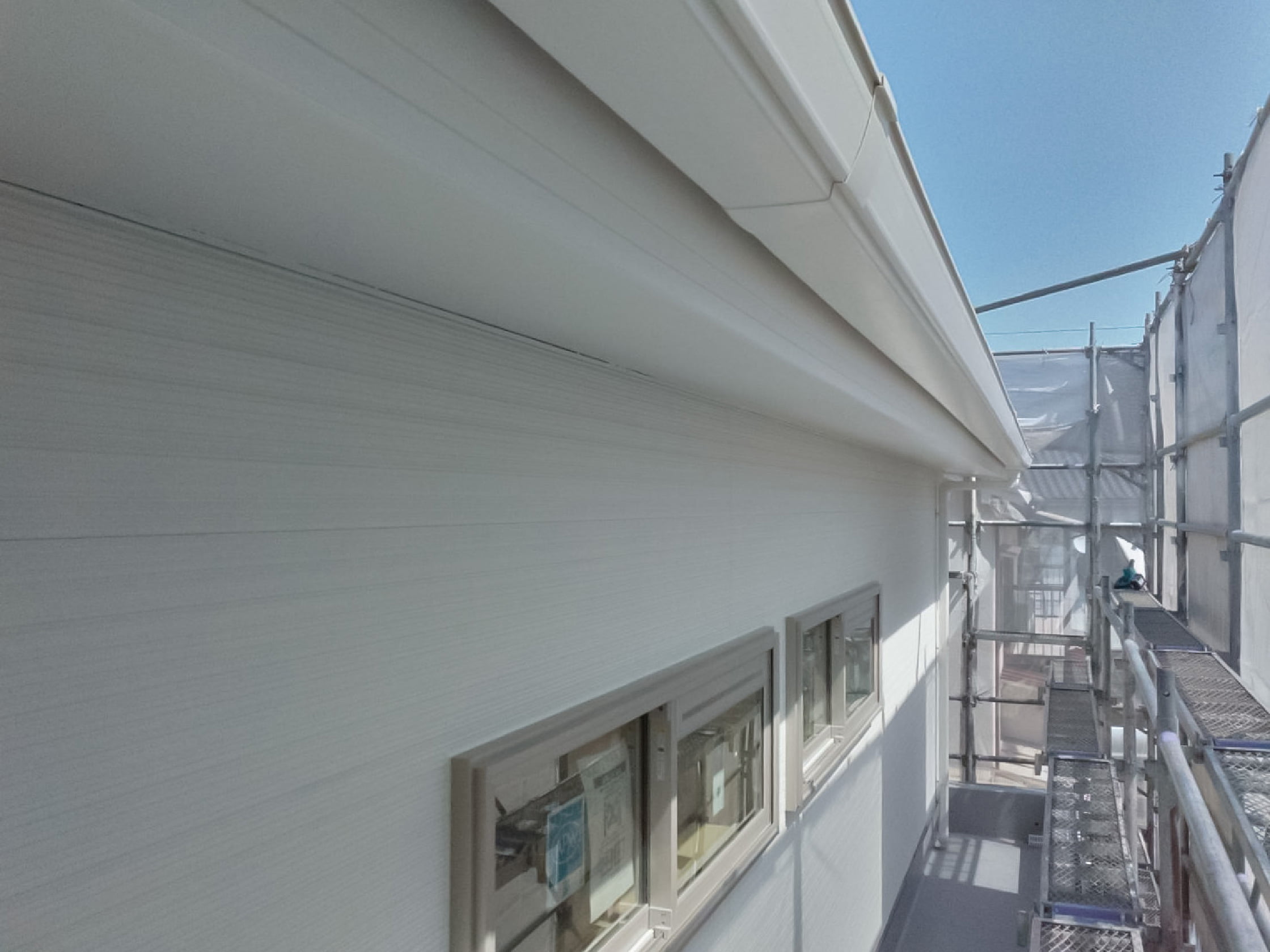 ハウスメーカー様からのご依頼をいただき、新築住宅の雨樋工事を担当しました。雨樋は屋根に降った雨水をスムーズに流し、外壁や基礎への浸水を防ぐ大切な役割を持っています。新築時にしっかり施工しておくことで、建物全体の耐久性を高め、長く安心して暮らせる住まいづくりに貢献しています。