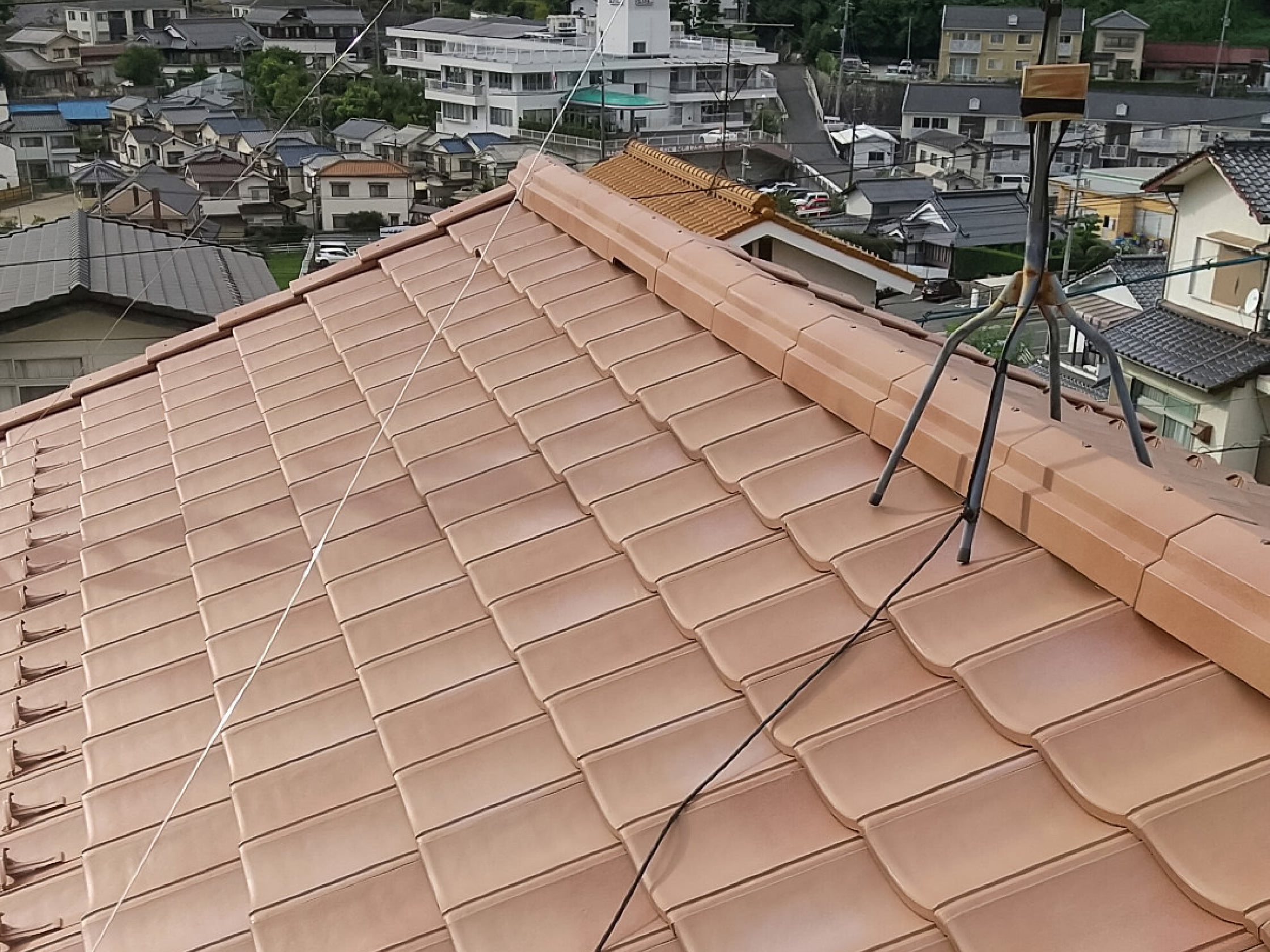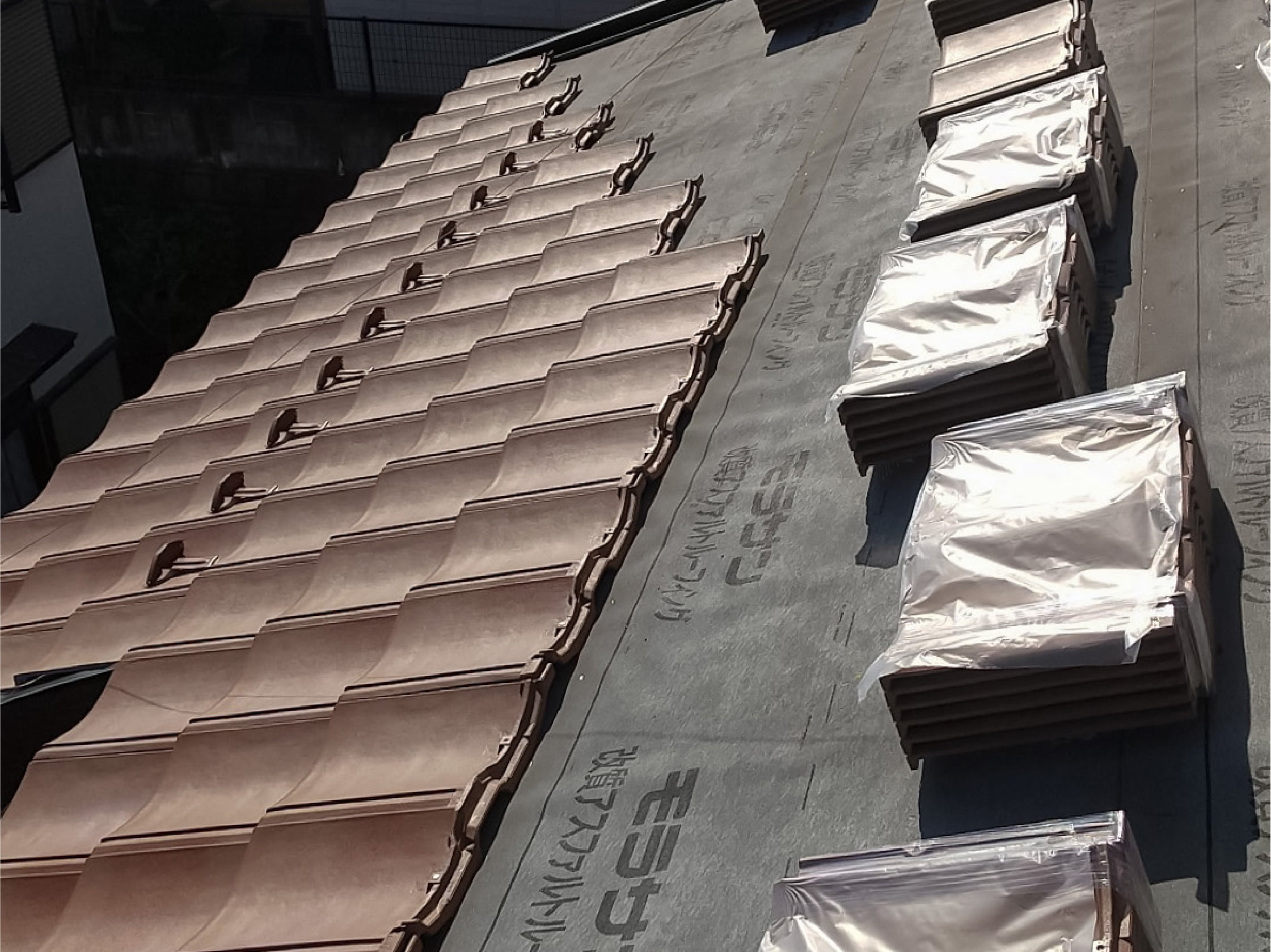 和瓦の屋根を、ケイミュー屋根材「ルーガ」に取り替えました。ルーガは瓦ならではの重厚感をそのままに、重さを約半分に軽量化。しかも強い衝撃でも割れにくく、台風や地震といった自然災害に強いのが特長です。軽さ・強さ・美しさを兼ね備えた屋根材により、安心して長く住める住まいになりました。また、屋根の換気口も設置し、室内の環境を快適に保てるようにしています。